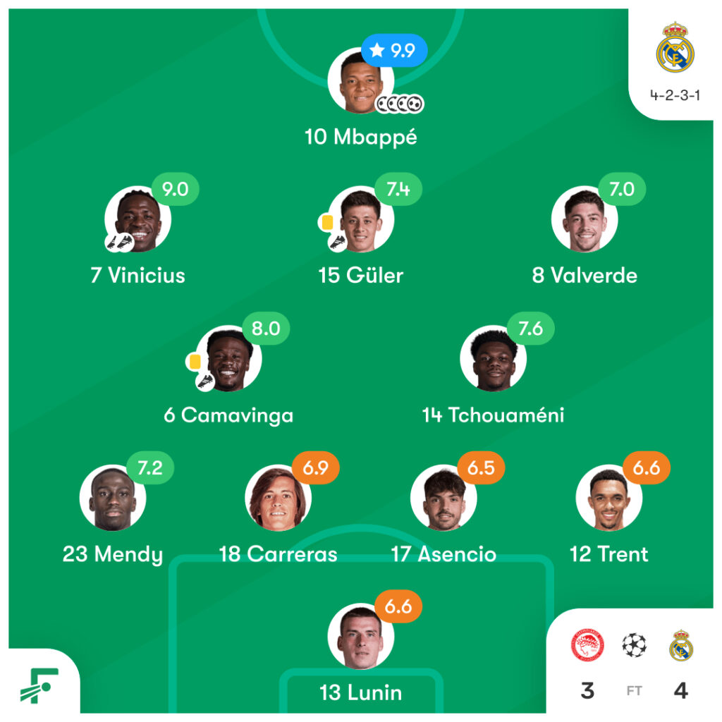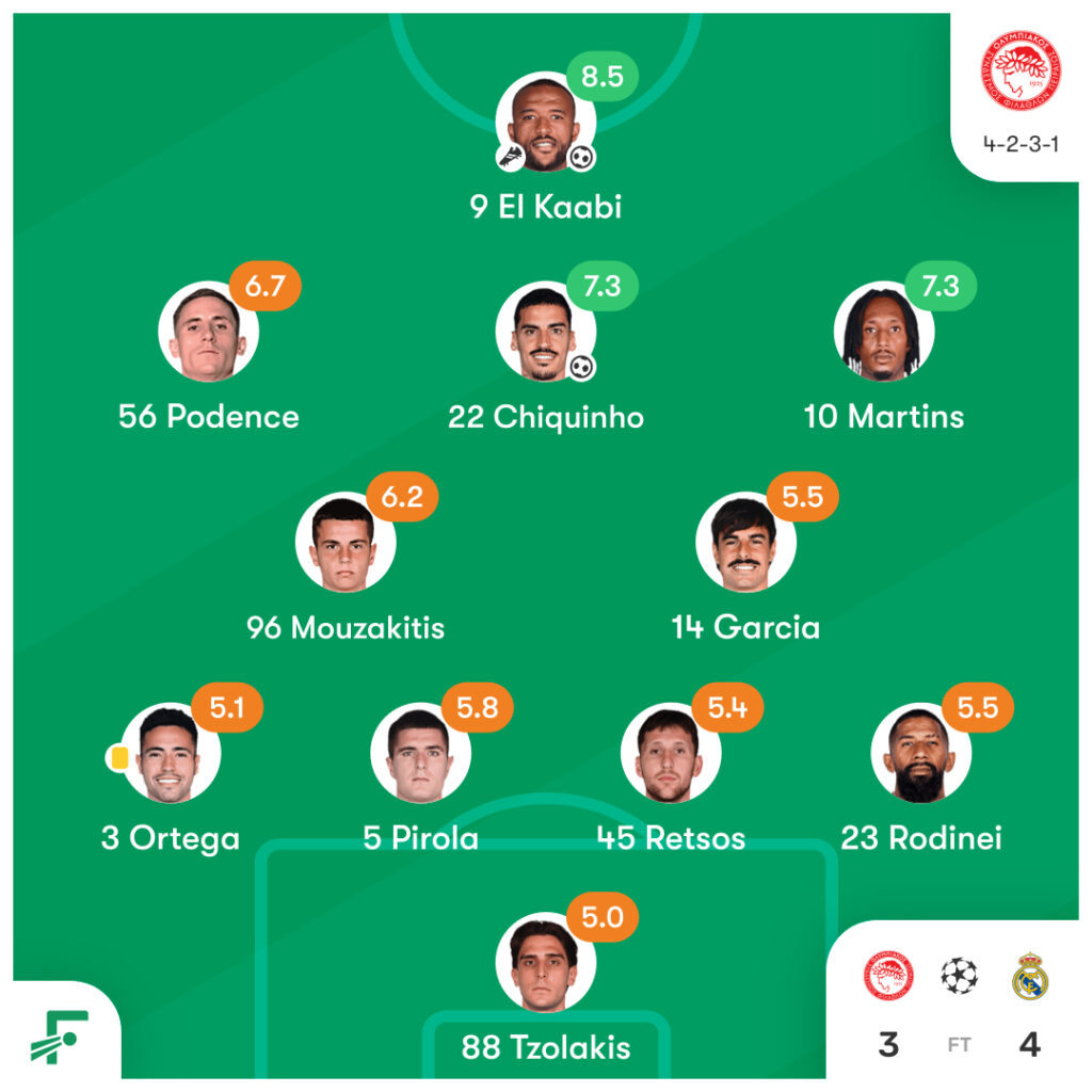 オリンピアコス vs レアル・マドリード CL第5節のスタメンとハイライト