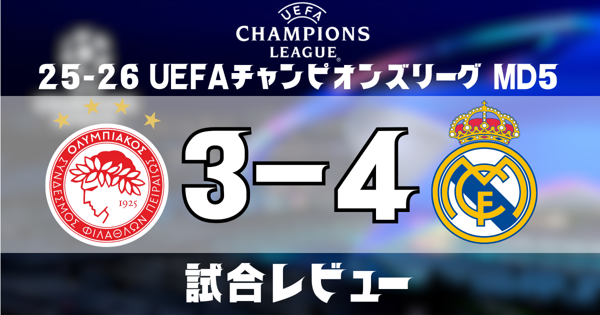 この記事では、2025年11月27日(日本時間)に行われたチャンピオンズリーグ第5節「オリンピアコス vs レアル・マドリード」の試合を振り返ります。