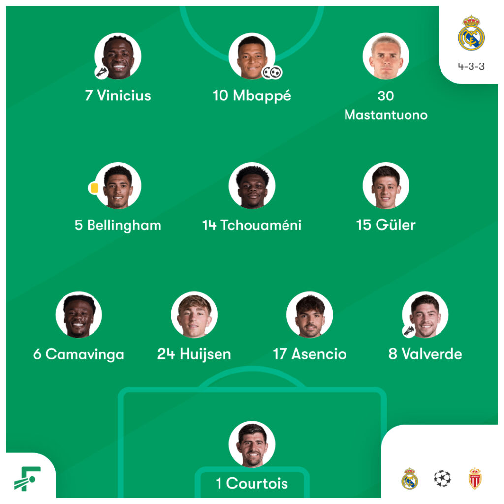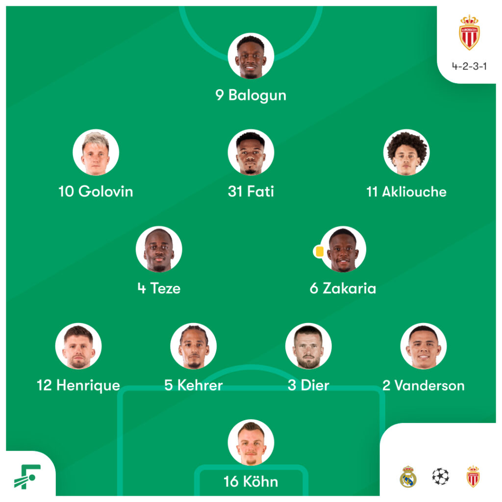 CL第7節 レアル・マドリード vs モナコのスタメンとハイライト