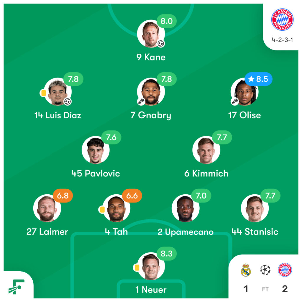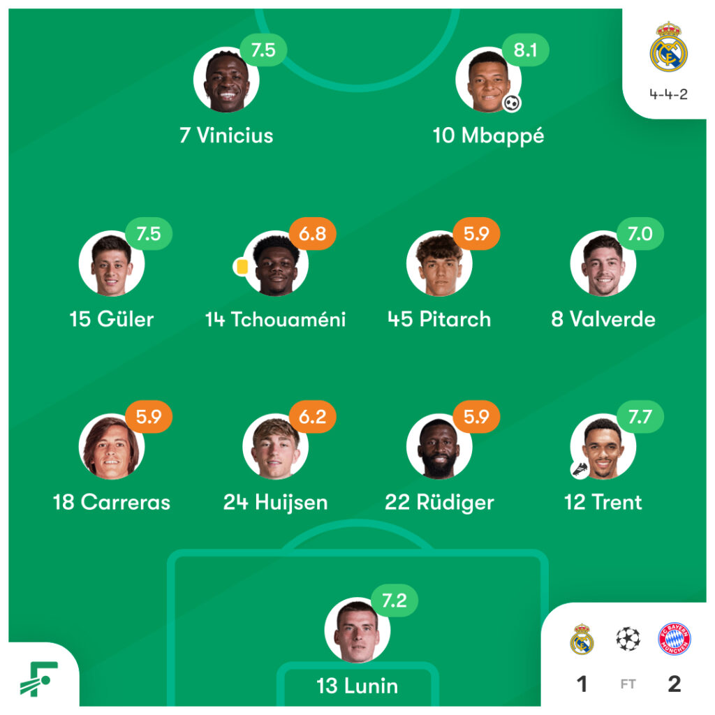 チャンピオンズリーグ 準々決勝 1st leg レアル・マドリード vs バイエルン・ミュンヘンのスタメンとハイライト