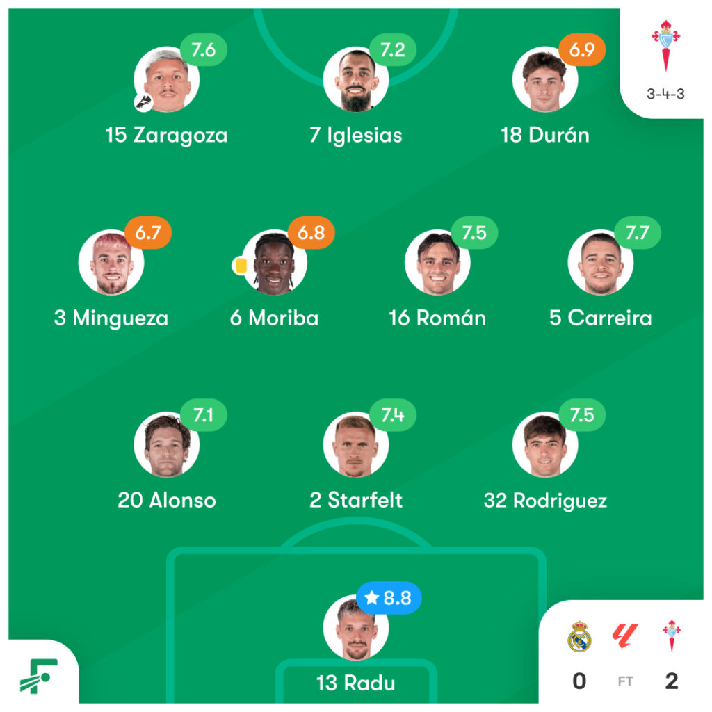 ラ・リーガ第15節レアル・マドリード vs セルタのスタメンとハイライト
