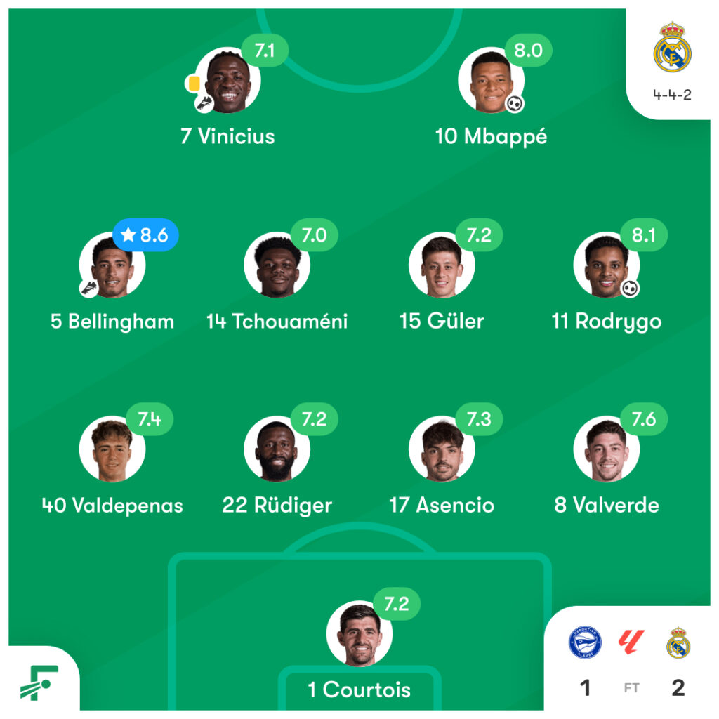 ラ・リーガ第16節アラベス vs レアル・マドリードのスタメンとハイライト