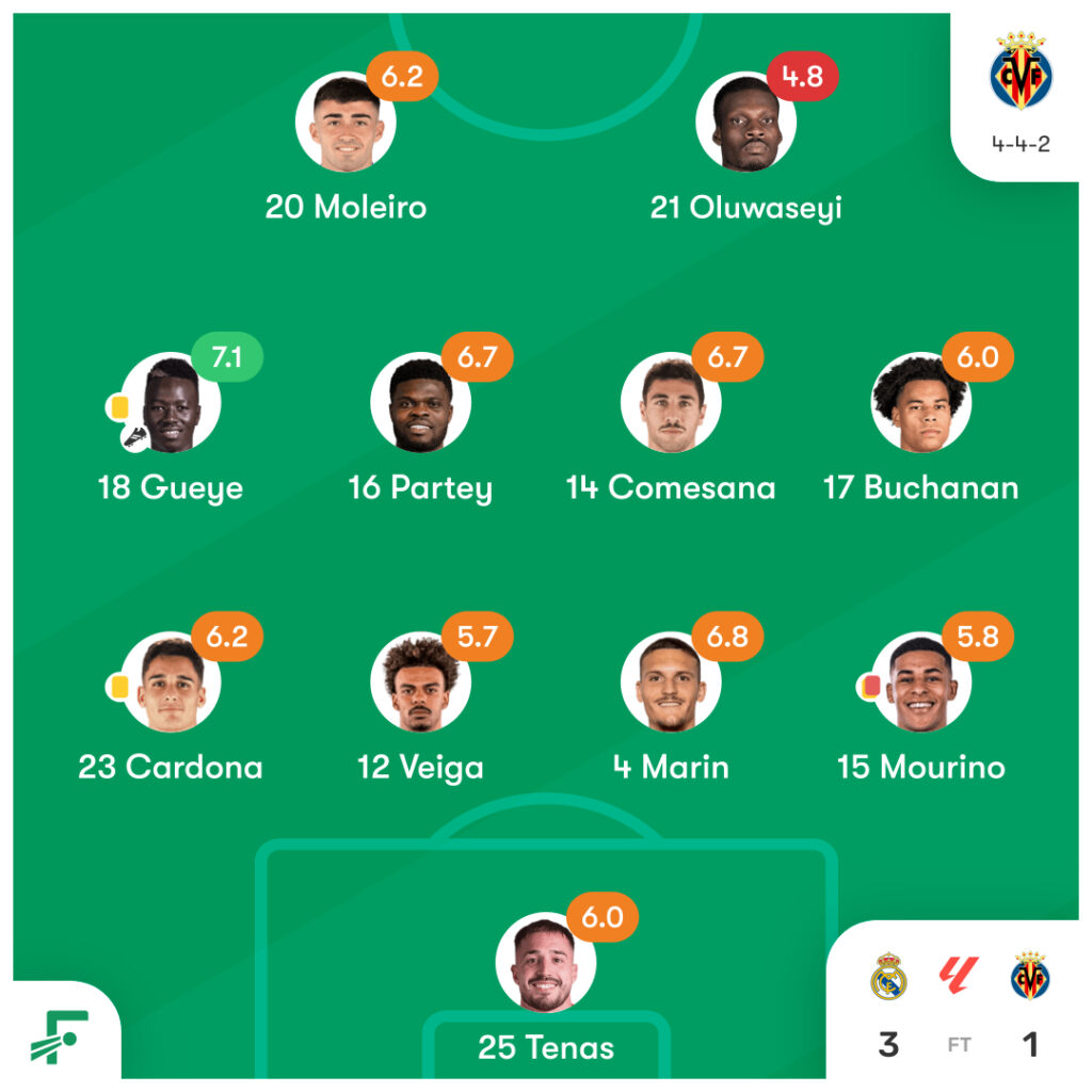 ラ・リーガ第8節 レアル・マドリード vs ビジャレアルのスタメンとハイライト