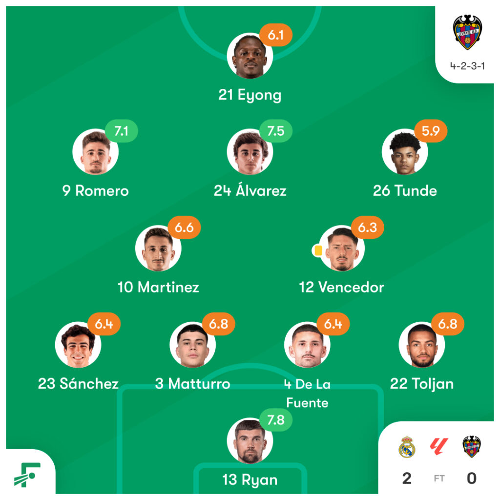 ラ・リーガ第20節 レアル・マドリード vs レバンテのスタメンとハイライト